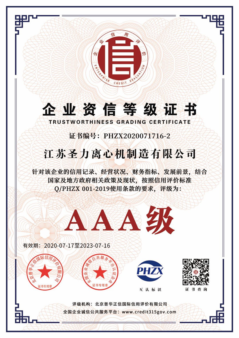 江蘇圣力離心機(jī)制造有限公司是國(guó)內(nèi)分離機(jī)械行業(yè)中主要的離心機(jī)生產(chǎn)企業(yè),對(duì)離心機(jī)的研究、設(shè)計(jì)、制造有多年的歷史,擁有齊全的設(shè)備、完善的檢測(cè)手段。公司已通過(guò)IS09000國(guó)際質(zhì)量體系認(rèn)證、ISO14001環(huán)境管理體系認(rèn)證、ISO45001:2018職業(yè)健康安全管理體系認(rèn)證和CE認(rèn)證,是江蘇省高新技術(shù)企業(yè),曾榮獲國(guó)家和地方多項(xiàng)榮譽(yù)稱(chēng)號(hào)。